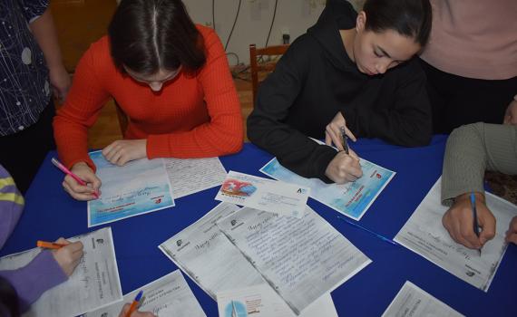 Ребята в своих письмах выразили слова благодарности всем тем, кто сейчас исполняет свой воинский долг, за чистое, мирное небо, высказали пожелания успешного выполнения боевых задач, и возвращения солдат домой живыми и здоровыми.