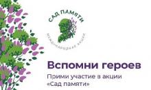 Международная акция «Сад памяти» впервые была проведена в 2020 году. Её цель – увековечить память каждого, создание зелёных памятников каждому, кто погиб в годы Великой Отечественной войны. Всего — 27 миллионов деревьев в память о 27 миллионов погибших!
