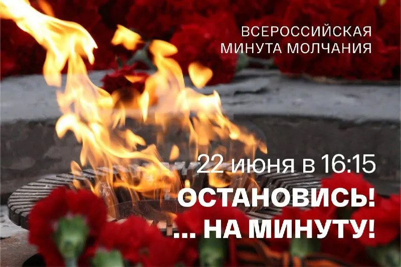 22 июня 2023 года в День памяти и скорби в 12.15 по московскому времени на всей территории Российской Федерации пройдет Всероссийская акция «Минута молчания».
