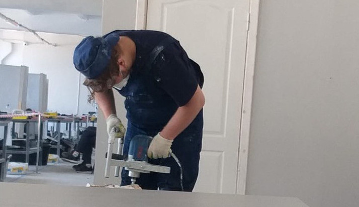 Обучающиеся выполняли задание согласно КОД № 1.5 2022-2024, которое состояло из двух модулей: Модуль А. «Сборка конструкции с установкой тепло- и звукоизоляции» и Модуль. В. «Базовое шпаклевание с заделкой стыков и углов». Время выполнения модулей - 4 и 2 часа соответственно. Демонстрационный экзамен прошел в деловой дружественной обстановке.