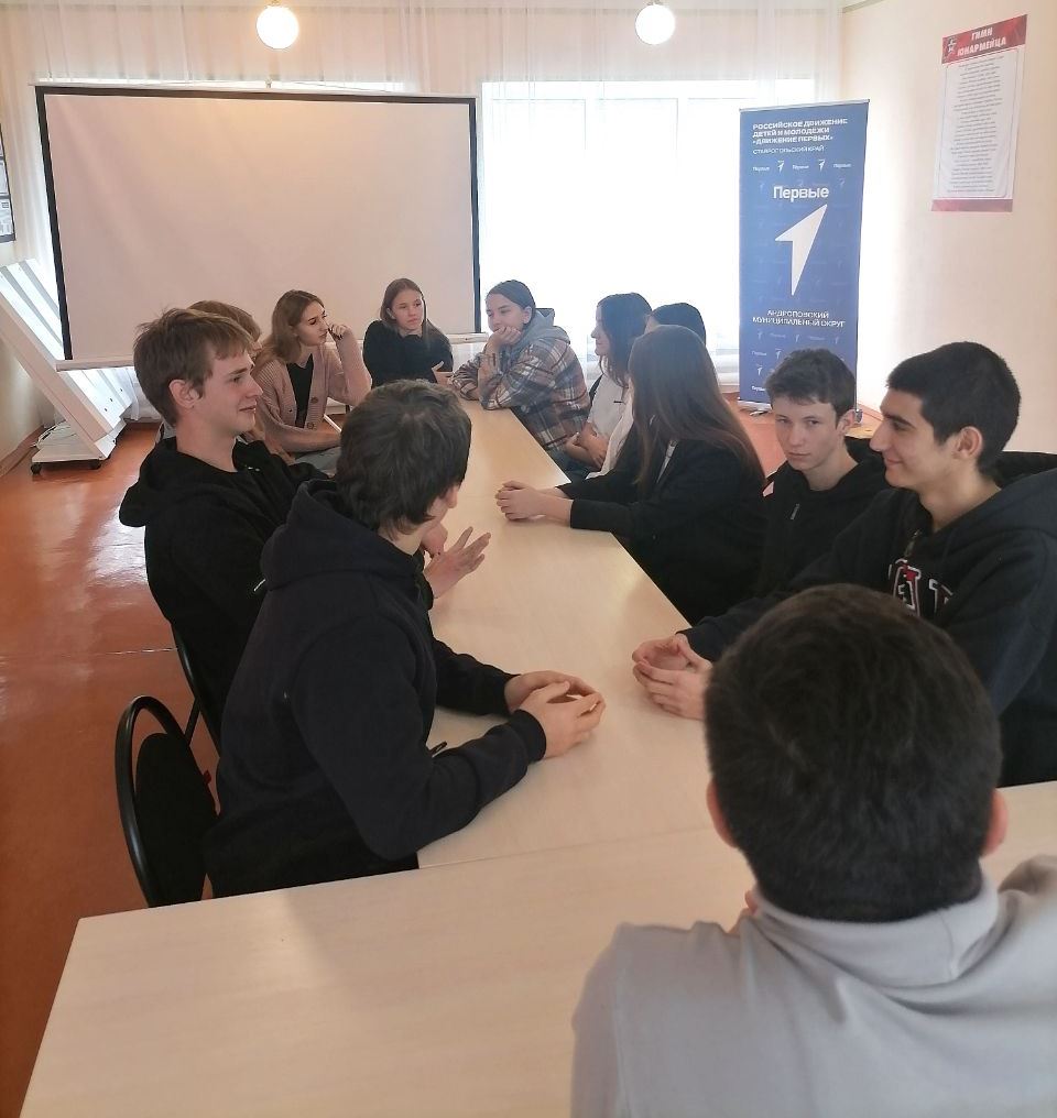 26 ноября 2024 года активисты волонтерского отряда ГБПОУ «Курсавский региональный колледж «Интеграл», Первичного отделения «Движение Первых» и МБУ АМО СК «Центр молодежных проектов» на базе МБУ ДО «Дом детского творчества», приняли участие в продуктивной встрече с представителем министерства молодежной политики Ставропольского края, кандидатом социологических наук, доцентом кафедры социологии и социальных инноваций высшей школы креативных индустрий Шаповаловым Алексеем Викторовичем.