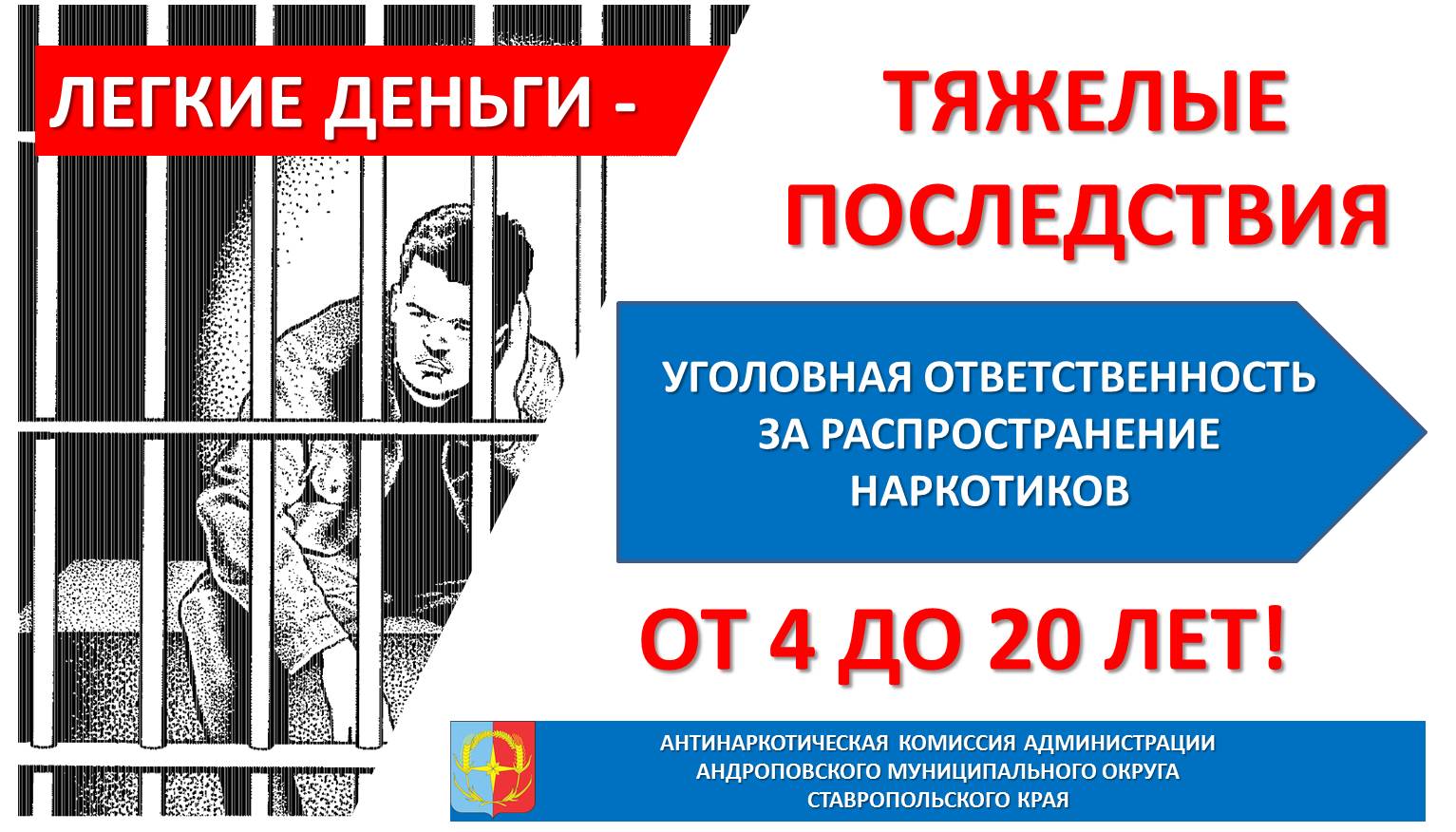 Антинаркотическая комиссия администрации Андроповского муниципального округа Ставропольского края напоминает, что уголовная ответственность за распространение наркотических средств и психотропных веществ наступает с 16 лет. Их незаконное производство, сбыт или пересылка, влечет за собой лишение свободы на срок от 4-15 лет до 8-20 лет со штрафом в размере до 500 – 1 000 рублей, либо пожизненное лишение свободы (статья 228.1 (ч. 1, ч.ч. 3-5 УК РФ).