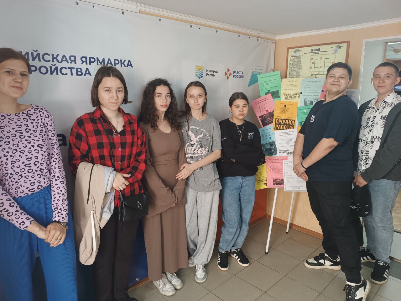 В рамках регионального этапа Всероссийской ярмарки трудоустройства «Работа России» 12 апреля 2024 года студенты Курсавского регионального колледжа «Интеграл» обучающиеся по профессиям «Повар, кондитер» и «Мастер по ремонту и обслуживанию автомобилей» посетили Территориальный центр занятости населения Андроповского муниципального округа, где пообщались с представителями организаций и предприятий, которые выступили потенциальными работодателями для соискателей. Работодателями был представлен стенд с описанием производственной сферы, размера заработной платы, социальных гарантий и перспективы карьерного роста.