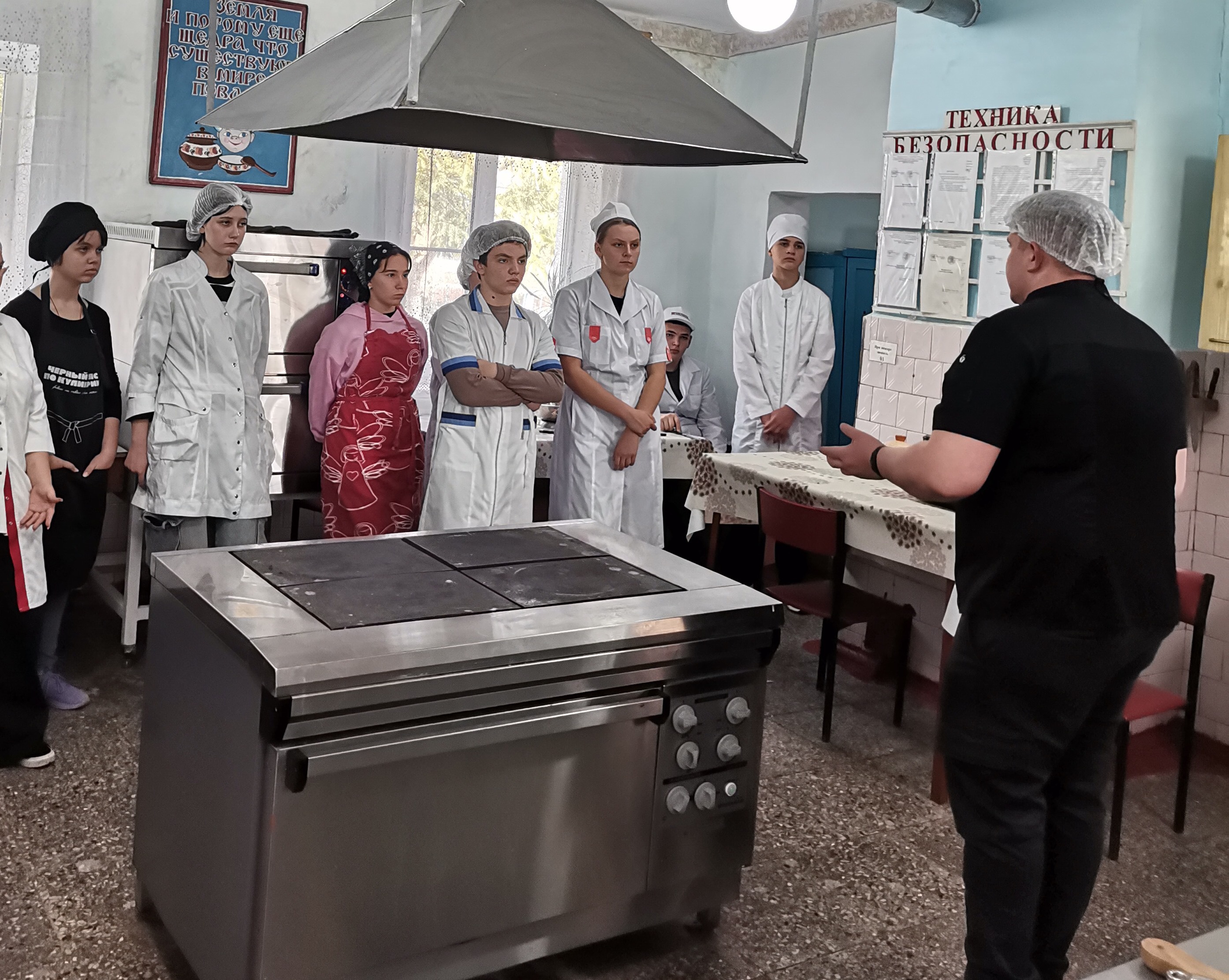 В учебно-производственном комбинате структурного подразделения Курсавского регионального колледжа «Интеграл» для обучающихся по профессии «Повар» 26 октября был проведен мастер - класс Кузнецовым Ф.А., шеф-поваром ресторана «Мясо-рыба» г. Ставрополь.