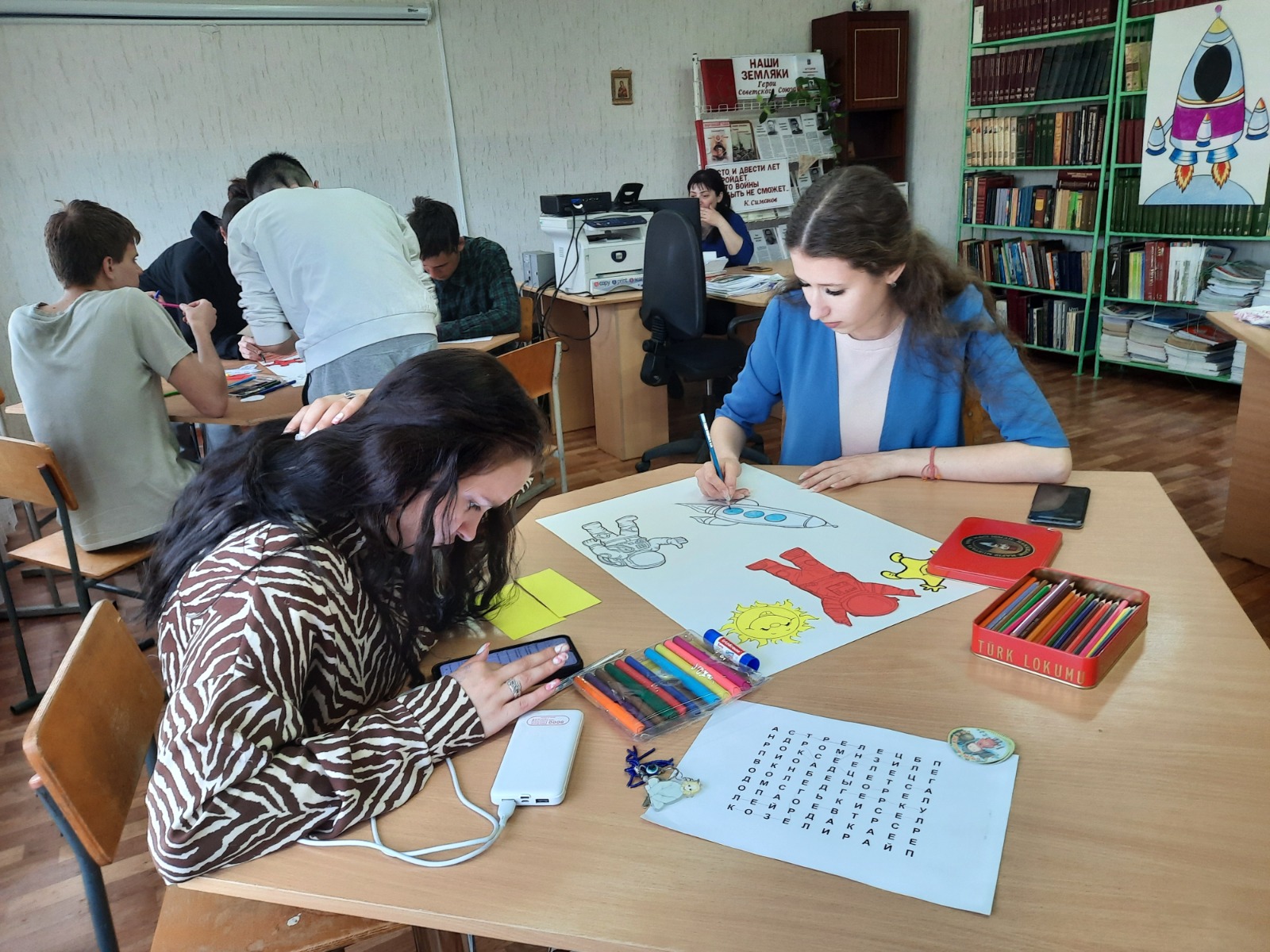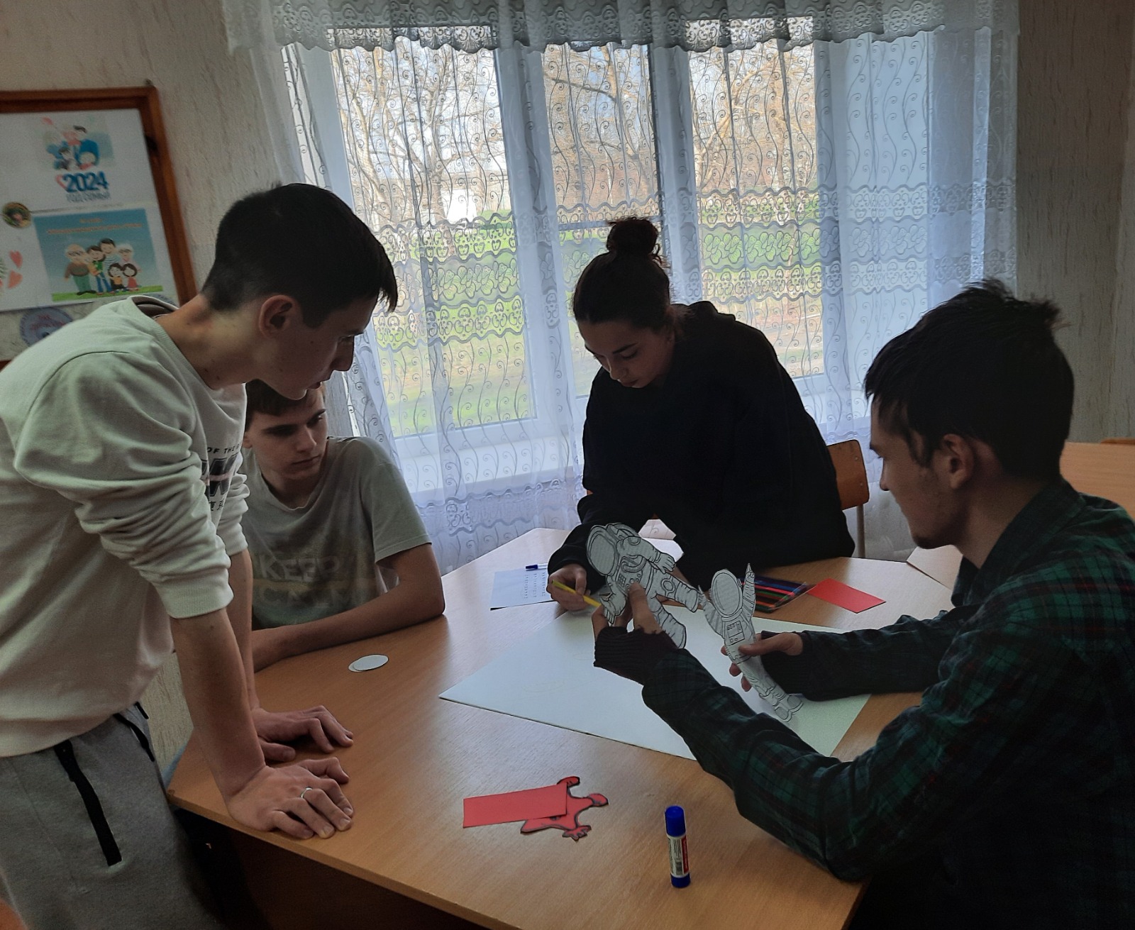 В преддверии Дня космонавтики 09 апреля 2024 года на базе Курсавского регионального колледжа «Интеграл» в рамках кружка «Ровесница» совместно с заведующей ЦБ Петуховой Е.В. было проведено тематическое мероприятие, посвящённое космосу. Обучающиеся поочерёдно участвовали в интересных конкурсах и викторинах. Первая викторина была направлена на актуализацию знаний о планетах Солнечной системы. Вторая – на знание созвездий космоса и знаков зодиака в виде зашифрованных слов – названий, которые должны были в точности отгадать студенты. Третий конкурс предполагал наличие пяти участников, которые поочерёдно выстраивали «живой кроссворд» из опредёлённых комбинаций цифр. Четвёртый конкурс назывался – «Космическое ассорти», задачей которого было создание коллажа из космических заготовок, которые студенты с большим увлечением декорировали и размещали на своём космическом коллаже. Необходимо было не только оформить плакат-коллаж, но и придумать слоган и сопроводительную историю. Пятый конкурс заключался в парной работе, которая предполагала собирание маленьких звёздочек одним из студентов с закрытыми глазами под чётким руководством партнёра. Шестой конкурс был рассчитан на громкие чтения о космосе перед тематической выставкой, посвящённой космосу. Последним, завершающим этапом мероприятия стало «улётное» чаепитие с блинами и вареньем. Студентам понравилось мероприятие, так как были задействованы не только в качестве эрудитов, но и практиков, которые своими руками создавали космический коллаж. Все разошлись счастливыми и довольными.