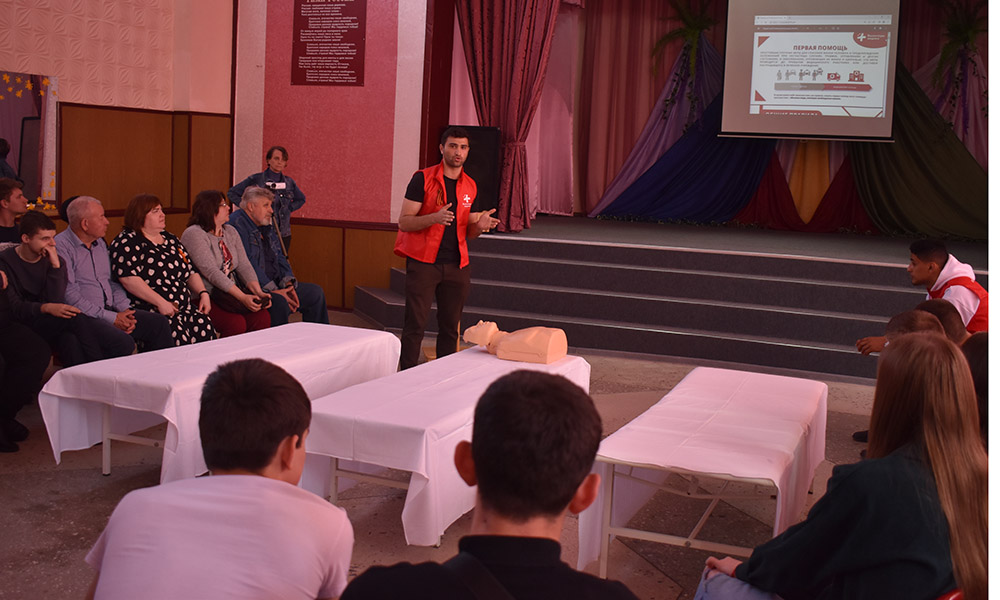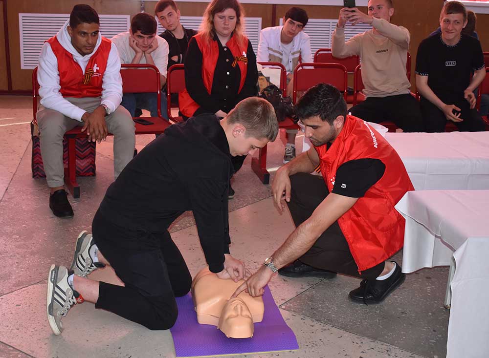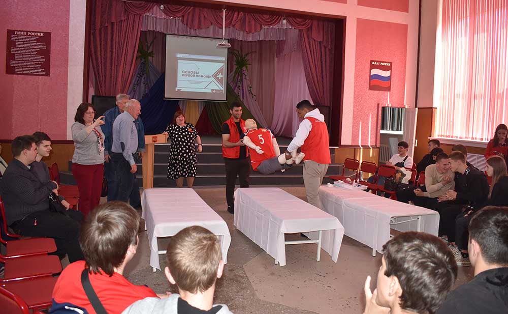 В актовом зале образовательного учреждения прошел урок первой помощи, который провел Шадманов Радихан с помощью наглядной презентации и практических упражнений на манекене «Гоша». Студентам колледжа «Интеграл» также выпала возможность попробовать свои полученные знания, применив технику непрямого массажа сердца (сердечно-лёгочная реанимация) и искусственное дыхание методом «Рот-ко-рту» на практике с помощью манекена.