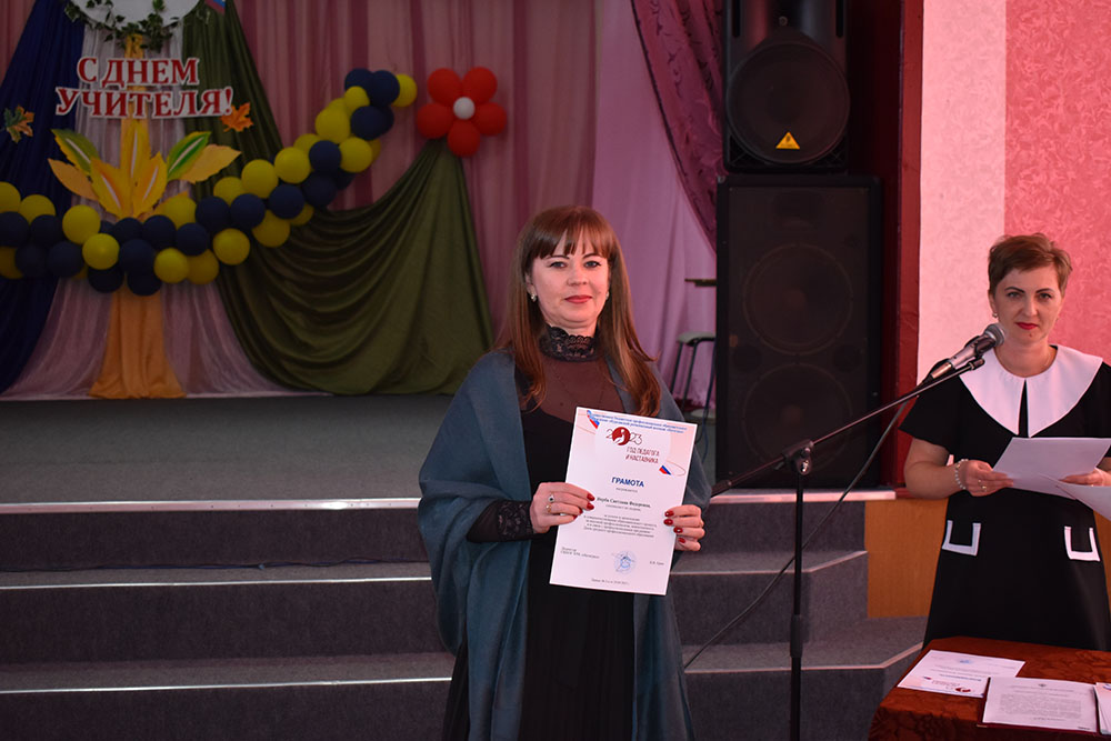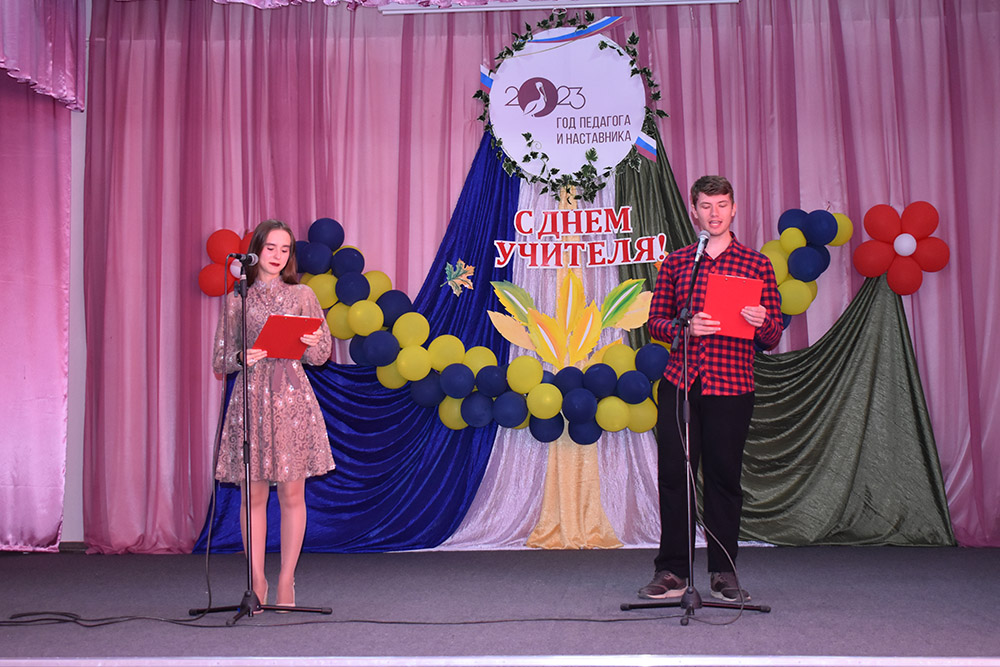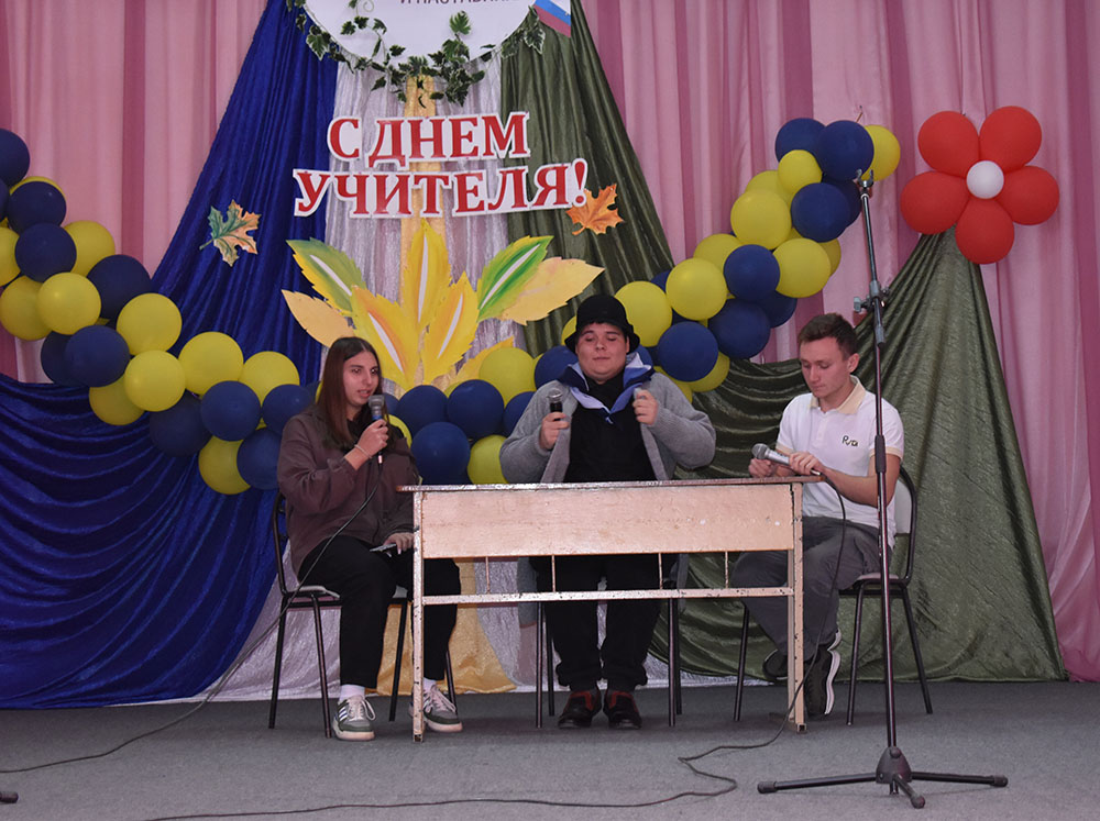 Ребята показали музыкальные номера, прочитали стихотворение, посвященное своим педагогам и наставникам, а участники театральной студии «Джинс» представили инсценировку «Семья педагога».