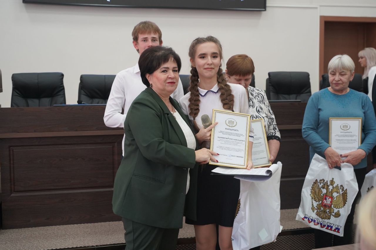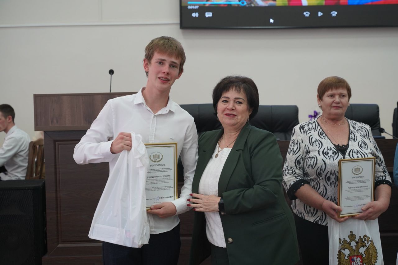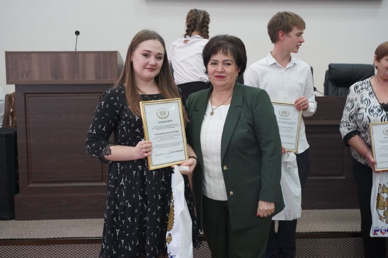 Студенты Курсавского регионального колледжа «Интеграл» Похожаева Дарья, Дорошенко Даниил и Жданова Маргарита награждены благодарственными письмами и памятными подарками от председателя комитета по развитию гражданского общества, вопросам общественных и религиозных объединений Государственной Думы Федерального собрания Российской Федерации Тимофеевой Ольги Викторовны.