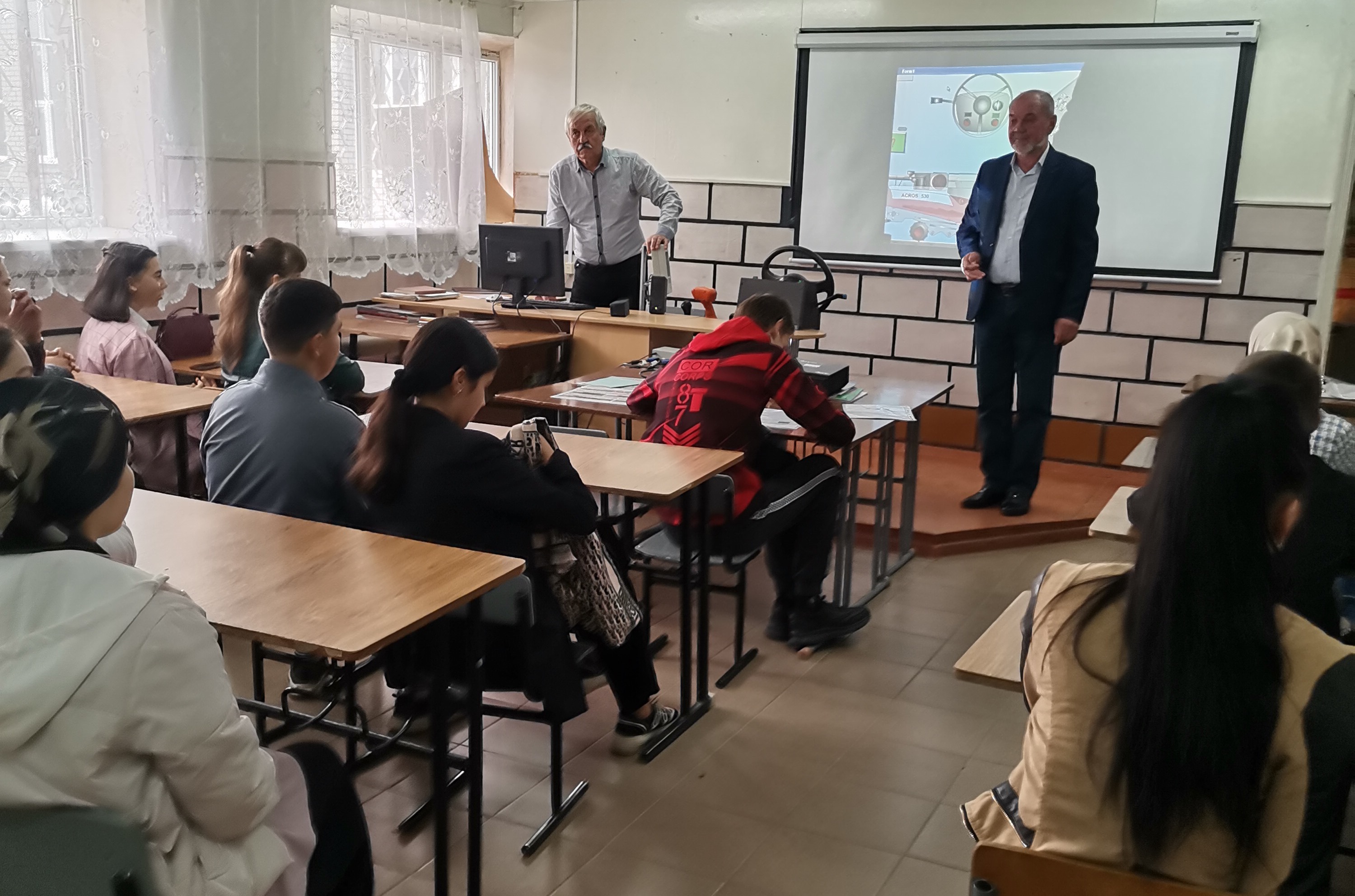 Обучающиеся школ Андроповского муниципального округа познакомились с преподавателями образовательного учреждения и условиями обучения по следующим специальностям: Информационные системы и программирование, Экономика и бухгалтерский учет (по отраслям), Эксплуатация и ремонт сельскохозяйственной техники и оборудования (Профессионалитет), Строительство и эксплуатация зданий и сооружений и профессиям: Повар, кондитер, Мастер по ремонту и обслуживанию автомобилей, а знакомство с миром профессий провели педагоги колледжа «Интеграл» Колесников Б.А., Кныш М.И., Кузнецова З.М., Сыроватский К.Б., Мокряк Е.Н., Кудяков А.Н.