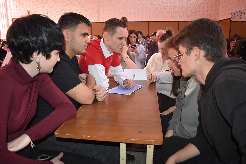 В гости к студентам пришли обучающиеся команд первичного отделения движения первых МБОУ СОШ №1 им. П.М. Стратийчука и МБОУ СОШ № 14 им Ф.Г. Буклова, они приняли участие в «Музыкальном Квизе», в котором достойными соперникам была команда первичного отделения движения первых колледжа «Интеграл».