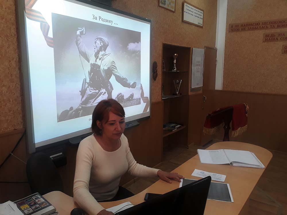 Во время урока ребятам демонстрировались видеозарисовки Главного храма Вооруженных сил РФ в подмосковном парке «Патриот», групповой портрет советских военных корреспондентов у здания Рейхстага, среди которых: Г. Самсонов, А. Морозов, Ф. Кислов, Л. Железнов, И. Шагин, О. Кнорринг, С. Альперин, А. Капустянский, Г. Петрусов, Р. Кармен, А. Архипов, М. Редькин, Н. Фиников. А затем появляются фамилии и фото: Д. Бальтерманц, Н. Боде, Р. Диамент, Э. Евзерихин, Г. Зельма, Б. Игнатович, Б. Кудояров, М. Марков-Гринберг, Я. Рюмкин, М. Савин, С. Струнников, В. Тарасевич, В. Темин, М.Трахман, Д. Трахтенберг, Г. Угринович, А. Устинов, В. Федосеев, Н. Хандогин, А. Шайхет.