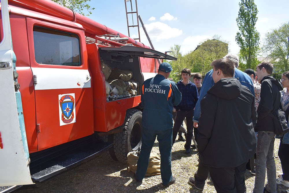В соответствии с Планом основных мероприятий Ставропольского края в области гражданской обороны, предупреждения и ликвидации чрезвычайных ситуаций, обеспечения пожарной безопасности и безопасности людей на водных объектах на 2023 год, утвержденным Губернатором Ставропольского края В.В. Владимировым 12 декабря 2022 года, в Курсавском региональном колледже «Интеграл» 28 апреля 2023 года прошел открытый урок с участием караула 36-ой пожарно-спасательной части МЧС России по Ставропольскому краю, посвященный празднованию Победы в Великой Отечественной войне 1941-1945 годов и Дню пожарной охраны.