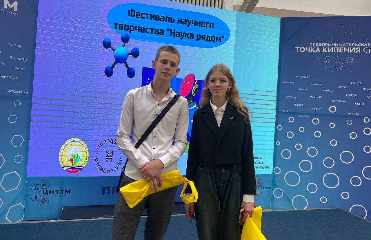 В Ставропольском государственном аграрном университете 13 декабря 2023 года прошел фестиваль научного творчества «Наука рядом». Обучающиеся первого курса Туник В., Дорошенко Д. в сопровождении преподавателя Курсавского регионального колледжа «Интеграл» Прозоровой Н.Н. приняли участие в работе фестиваля.