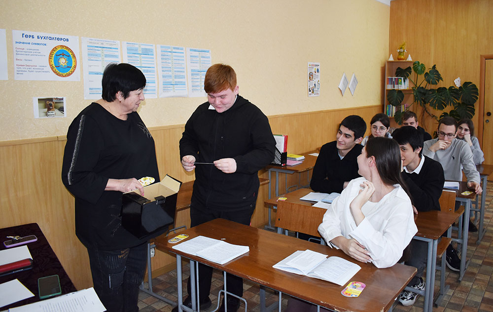 17 февраля 2025 года в рамках творческого этапа фестиваля «Профессиональный хит – парад» в группе Э-18 первого курса Курсавского регионального колледжа «Интеграл» в учебном кабинете «Бухгалтерский учет», оснащенном персональным компьютером и SMART- доской было проведено открытое мероприятие – урок-игра «Изучай, знай и цени основы бухгалтерского учета».