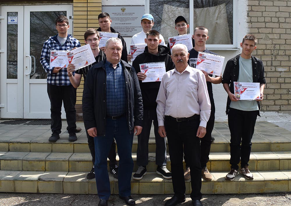 В период 08 по 12 апреля 2024 г. в ресурсном центре профессиональной подготовки, переподготовки и повышения квалификации рабочих кадров и специалистов ГБПОУ «Курсавский региональный колледж «Интеграл» прошли обучение обучающиеся и преподаватель ГБПОУ «Зеленокумский многопрофильный техникум» по программе «Технологические процессы ремонтного производства» в количестве 9 человек.